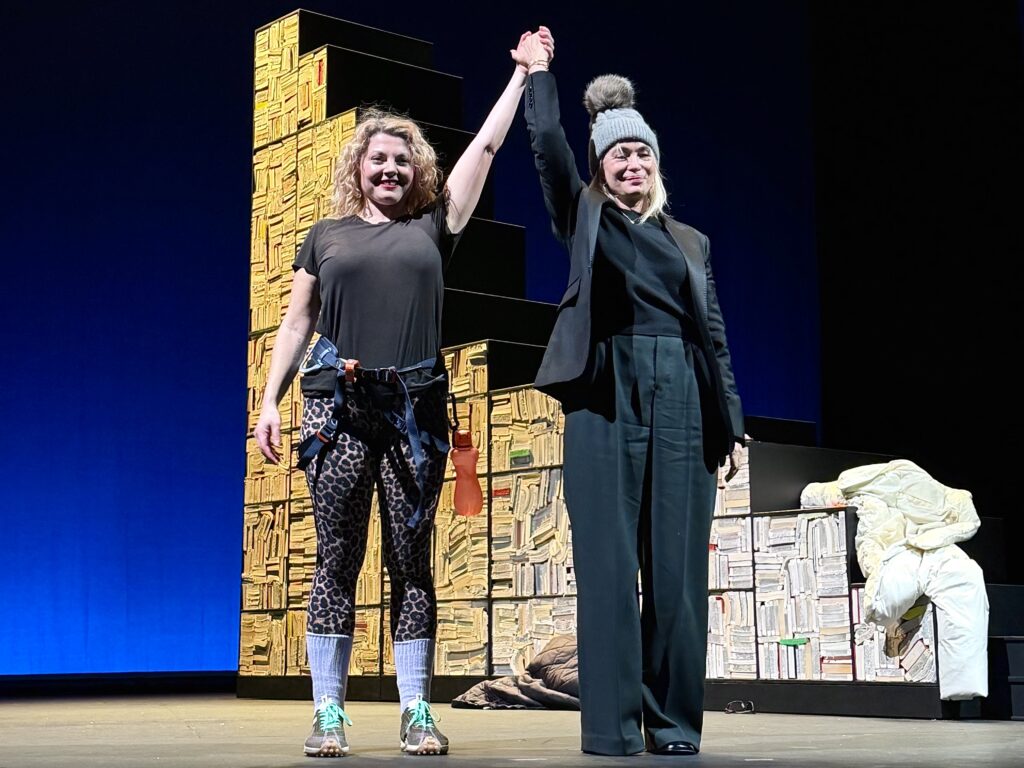 C’est au Théâtre de l’Atelier, du 17 janvier au 8 mars 2026 (47 représentations), que ce projet trouve enfin sa forme aboutie : une « lecture mise en scène » signée Jacques Vincey, portée par une scénographie sobre et exigeante. Loin d’une simple adaptation, LA FIN DU COURAGE devient une expérience vivante et plurielle grâce à un dispositif audacieux : cinq duos de comédiennes se succèdent sur scène, chacune insufflant sa propre couleur, sa tension et sa vérité au dialogue philosophique.