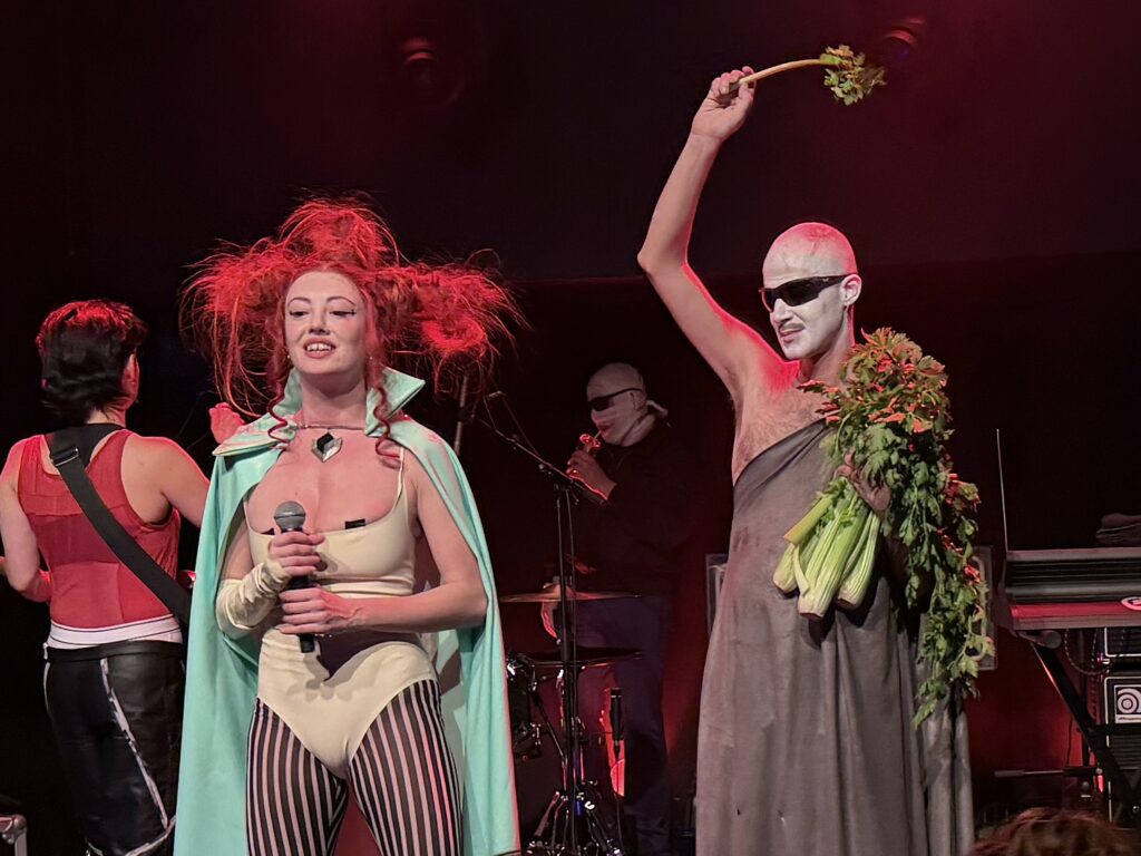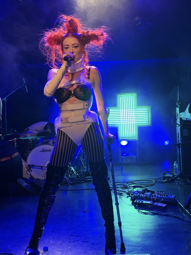 Fin à 23h05. Soixante-cinq minutes de thérapie de choc où cold wave, post-punk, poésie trash et performance burlesque se mélangent comme un incontrôlable cocktail par intraveineuse.