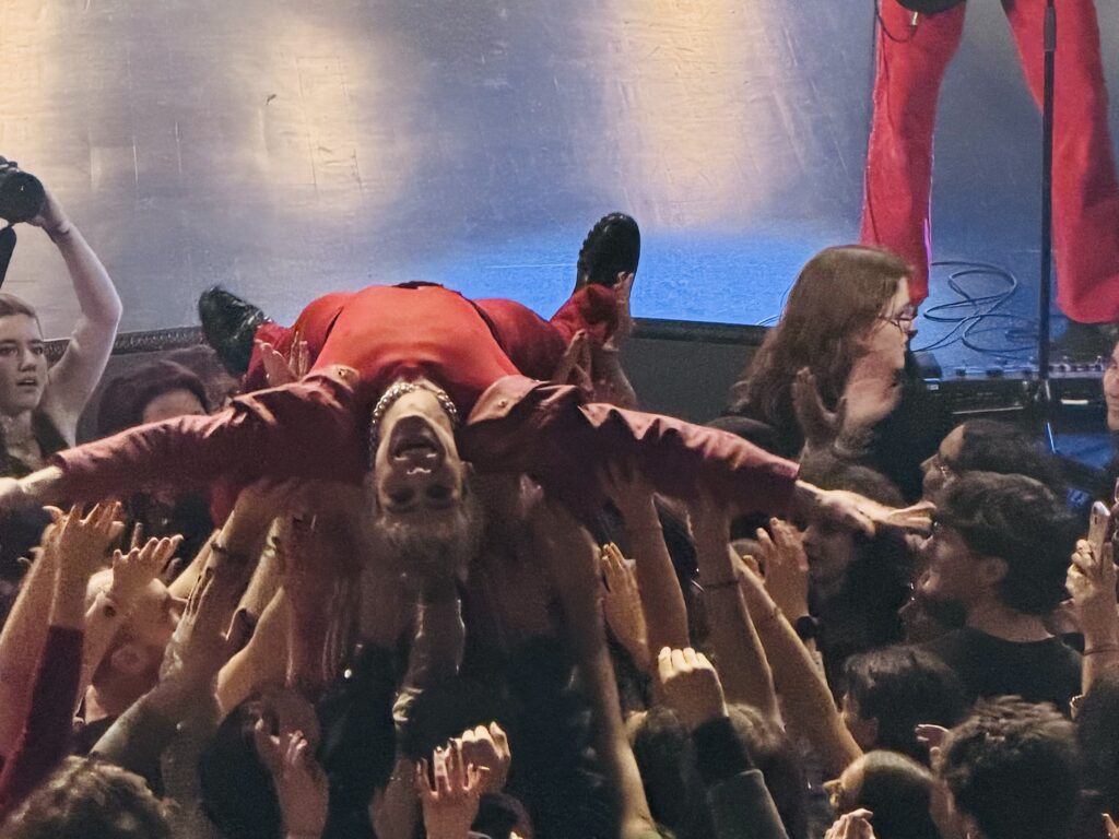 Le set démarre fort avec ROI. Les corps se meuvent comme une marée vivante. Vient ensuite BASTILLE alors que César hurle son étonnement joyeux : « Putain, mais quoi ? On est au Trianon, baby ! ». L’air vibre d’une urgence adolescente, celle qui sait que tout peut basculer en un riff de guitare.